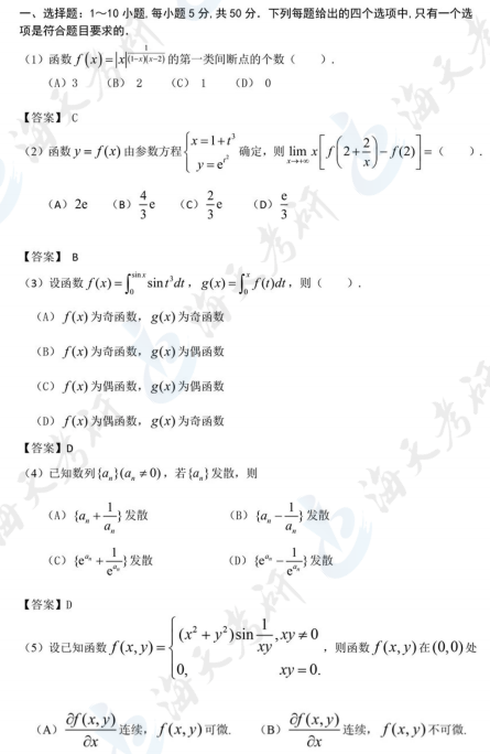 以上就是海天考研网为各位考生整理的2024考研数学二真题及解析汇总,仅限参考。持续为考研学子更新其他考研科目考研真题及答案解析,各位考生可以根据自身需要关注收藏,及时查看完整版2024考研真题及答案解析。